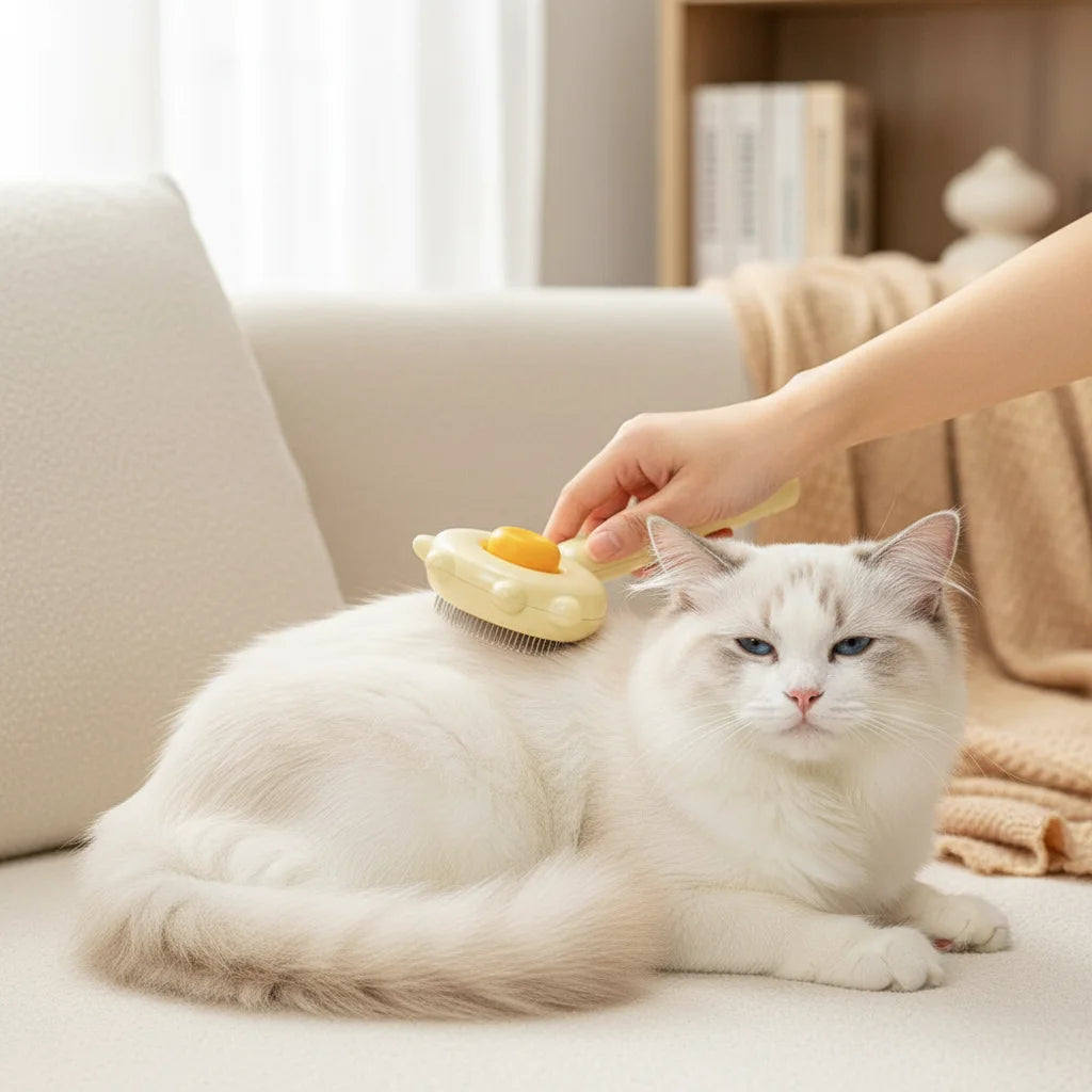 Absolutely! Designed with soft, rounded bristles, it glides through fur, soothing your cat while gently removing knots. It's pure comfort, not a chore, making grooming a joy for sensitive felines.